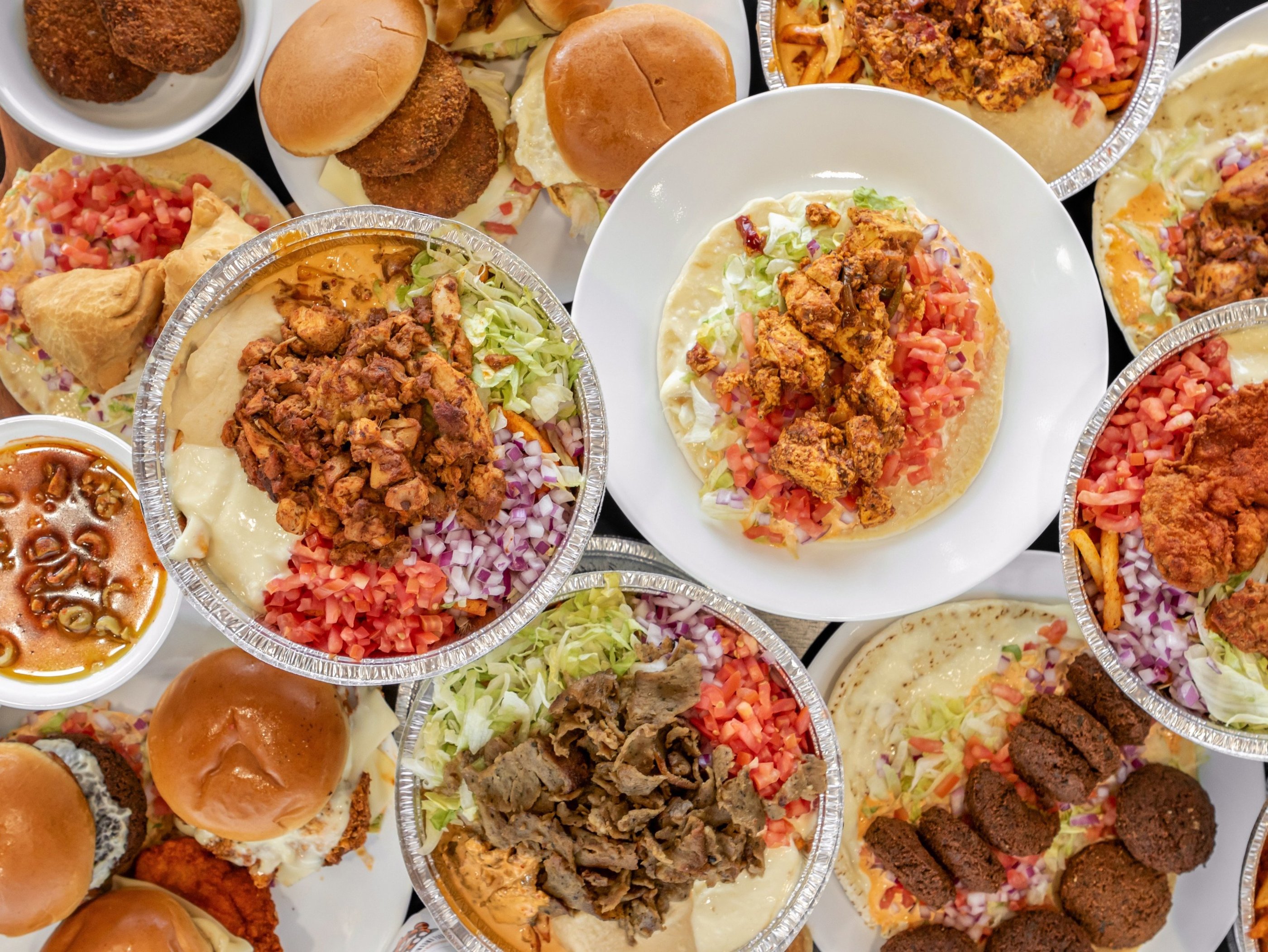Crispy fusion burger with bold spices and garlic sauce.